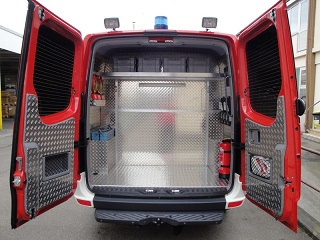 Besonderheiten: Geräteraum komplett getrennt vom Mannschaftsraum. Im Mannschaftsraum wurde ein Klapptisch mit zusätzlicher Sprechstelle für den 4m Fahrzeugfunk installiert, desweiteren wurden vier zusätzliche 2m Handfunkgeräte auf dem Fahrzeug verlastet.